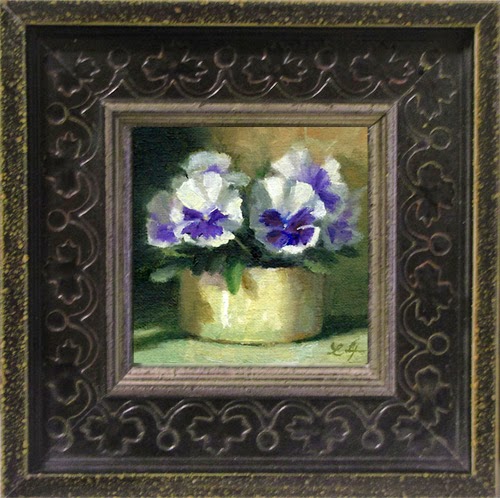 painting is 3x3" painted on linen, the frame size is 5.25x5x25".